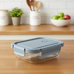 Taper De Vidrio Hermético 700ml Rectangular Set De 3 Unidades Celeste