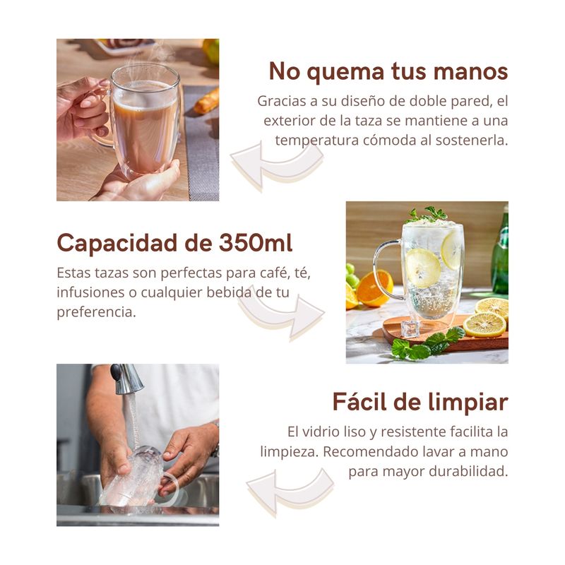 • Diseño de doble capa que mantiene la temperatura y evita quemaduras.