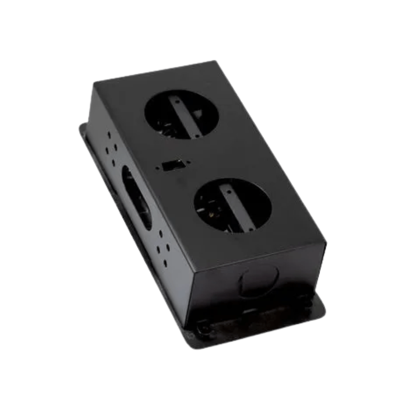 Tomacorriente superpuesto diseñado para muebles, ofrece 4 tomas múltiples en un solo módulo compacto. Convierte una superficie plana en un punto de alimentación para electrodomésticos o dispositivos eléctricos de forma discreta y práctica.