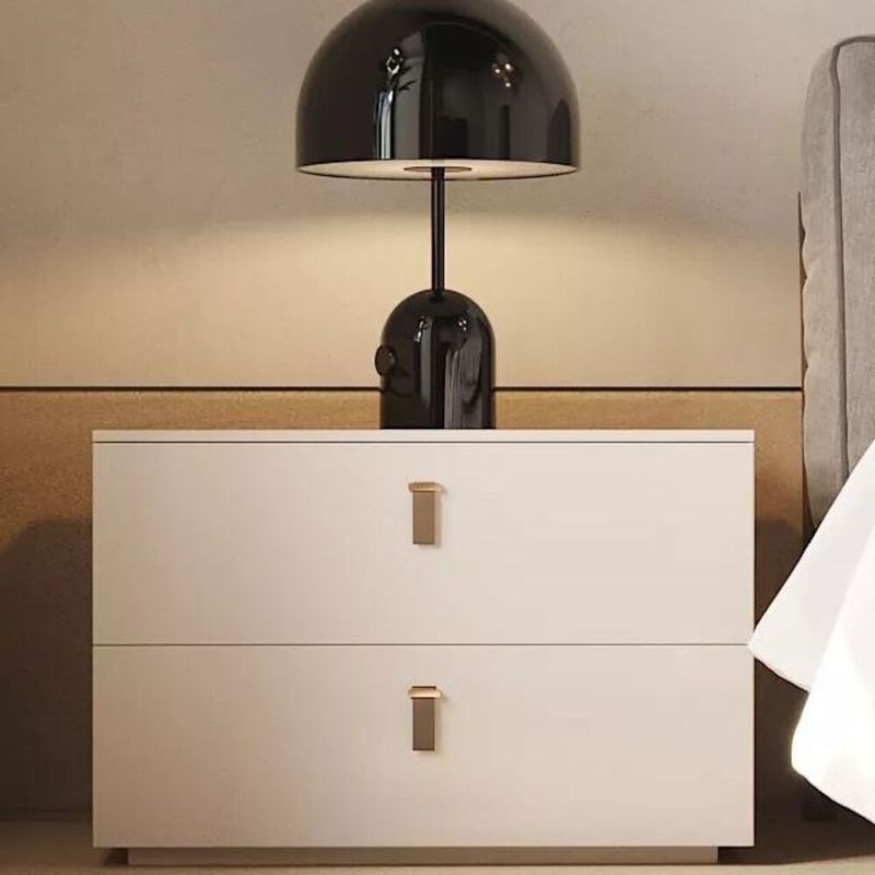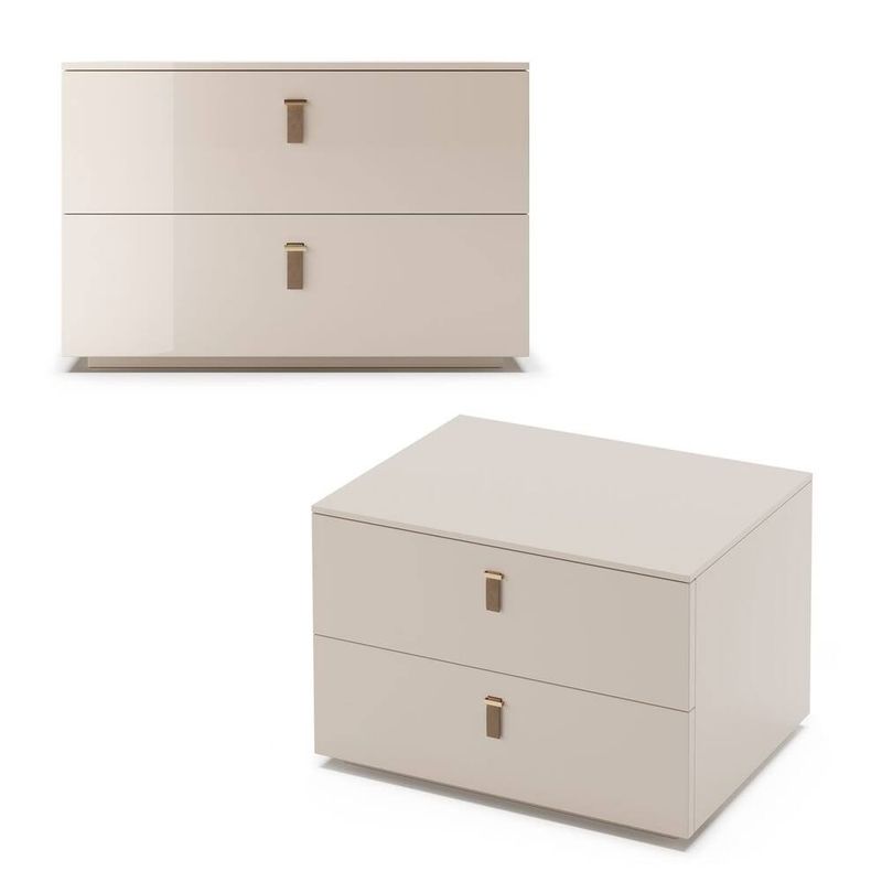 Este velador moderno combina líneas limpias y un diseño funcional que se adapta perfectamente a cualquier dormitorio elegante y contemporáneo. Su estructura en melamina color blanco aporta amplitud y luminosidad al espacio, mientras que sus tiradores metálicos en tono dorado añaden un toque de sofisticación.
