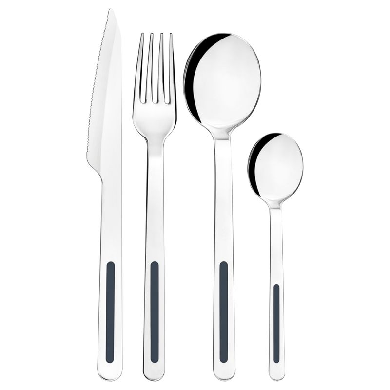 Pocos momentos son tan especiales como estar en la mesa con las personas que amamos degustando una deliciosa comida. Y para armar la mesa con mucha belleza y estilo elija el juego de cubiertos Vik Tramontina de Acero inoxidable con detalles de polipropileno oliva de 24 Pzas. Con un diseño minimalista los cubiertos están fabricados de Acero inoxidable con acabado pulido mate y detalles de polipropileno de color oliva en la parte frontal del mango el metal queda expuesto y en el reverso se encuentra el detalle de Polipropileno. Para garantizar alta calidad y eficiencia los cuchillos poseen un alto poder de corte y los tenedores y cucharas poseen un estampado y espesor especiales lo cual garantiza mayor resistencia. ¡Además de todas estas características el juego de cubiertos es apto para lavavajillas por lo que su día a día en la cocina será mucho más práctico!