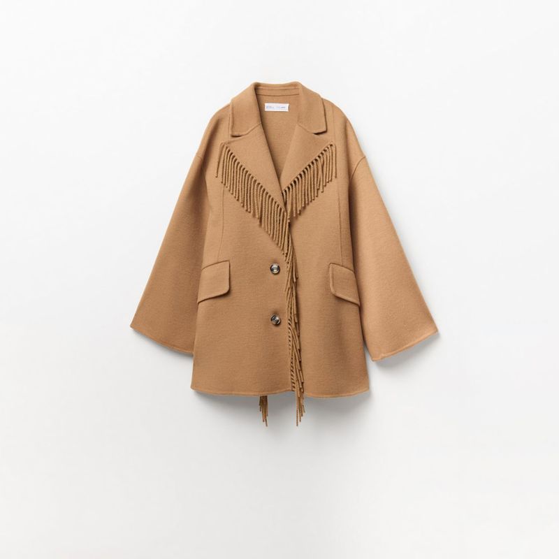 ModaMujerBlazers y AbrigosAbrigo Mujer Sfera Flecos Camel