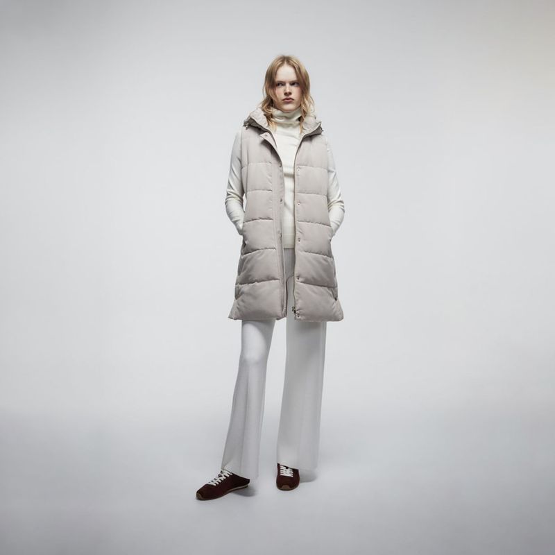 Chaleco largo acolchado de cuello subido con capucha ajustable y manga sisa. Bolsillos delanteros. Cierre frontal con cremallera y botón Poliester 100%. Compra Online tu Abrigo Mujer Sfera Plumas Fina Mx Beige y conviértela en pieza clave de tu outfit esta temporada de primavera verano solo en Oechsle.pe