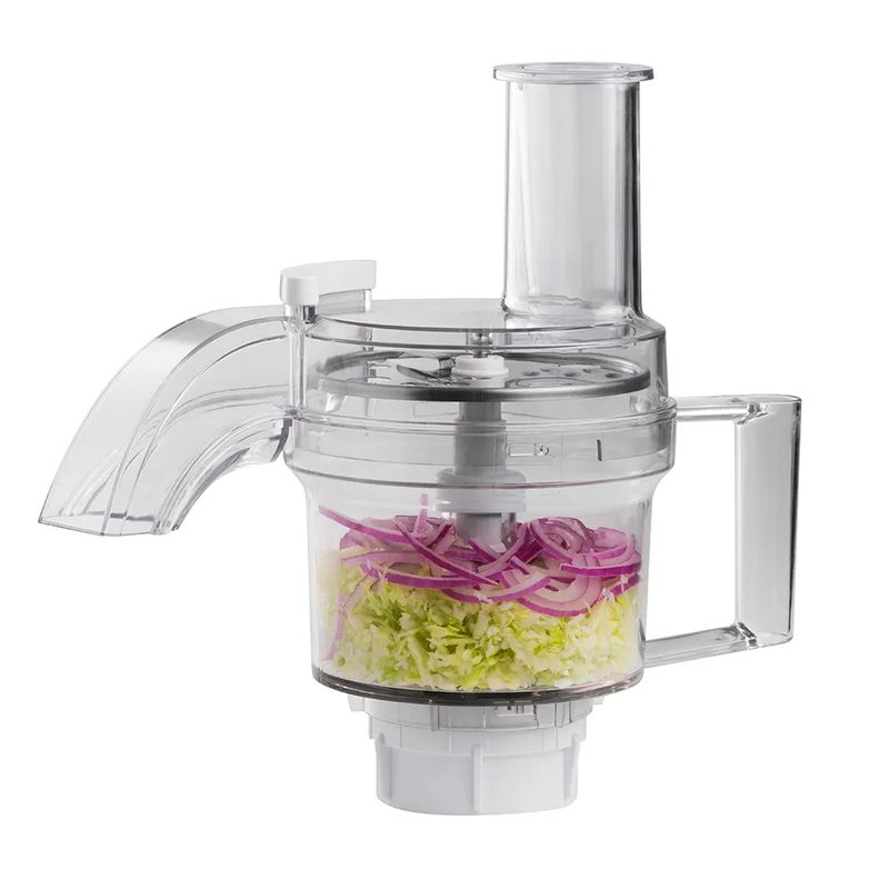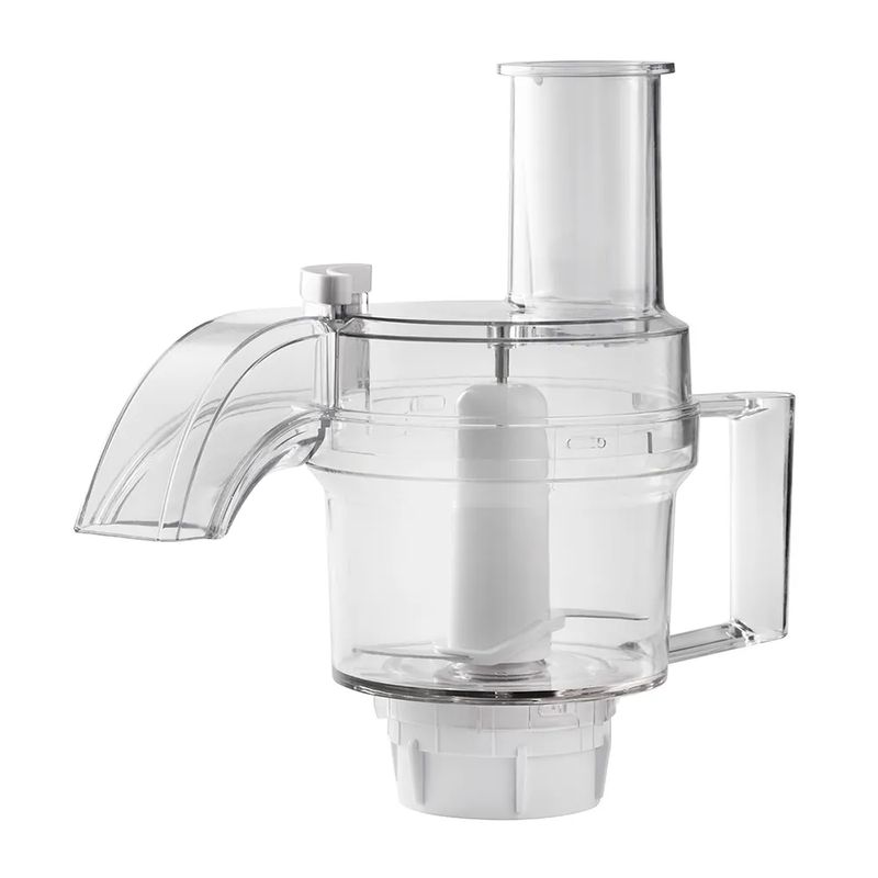 El accesorio Oster BLSTFP-W00 es un procesador de alimentos diseñado para acoplarse a licuadoras Oster y ampliar sus funciones de cocina. Permite cortar, picar, mezclar y rallar gracias a su cuchilla en forma de “S” de acero inoxidable y a sus dos discos reversibles, uno para cortes finos y otro para cortes gruesos. Su recipiente tiene una capacidad aproximada de 750 ml y está fabricado en plástico resistente libre de BPA, lo que lo hace seguro para el contacto con alimentos. Incluye un tubo dispensador que facilita servir directamente el contenido procesado o mantenerlo dentro del accesorio. Es una opción práctica para quienes desean aprovechar su licuadora como un procesador sin necesidad de adquirir un aparato independiente, optimizando espacio y versatilidad en la cocina.
