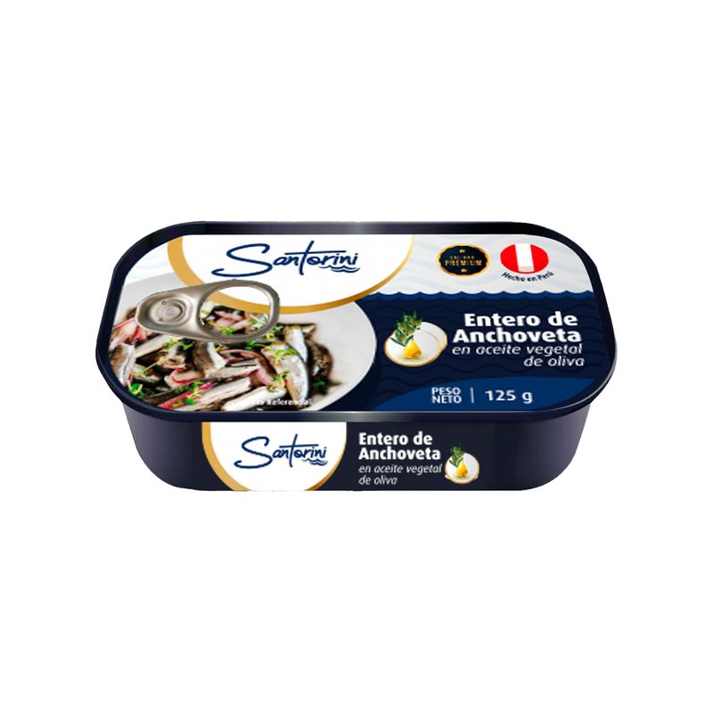 SupermercadoAbarrotesConservasPescados en ConservaAnchoveta en Aceite Vegetal SANTORINI Lata 125g