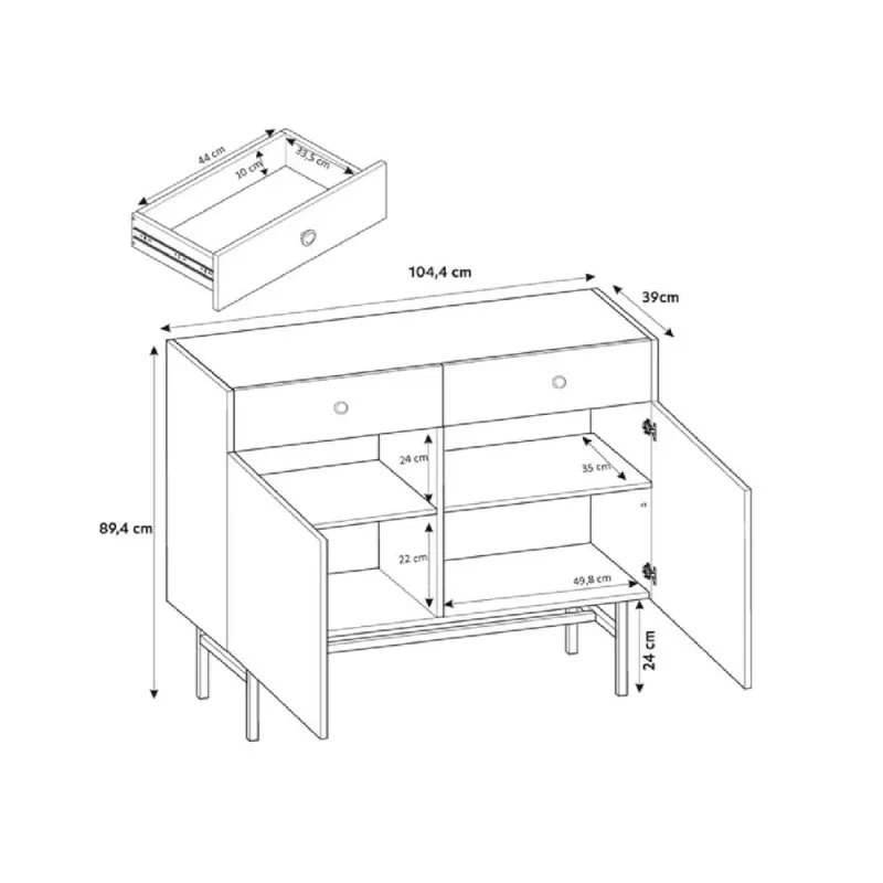 Aparador Moderno TU MESITA Marta color Beige 2 cajones 2 puertas