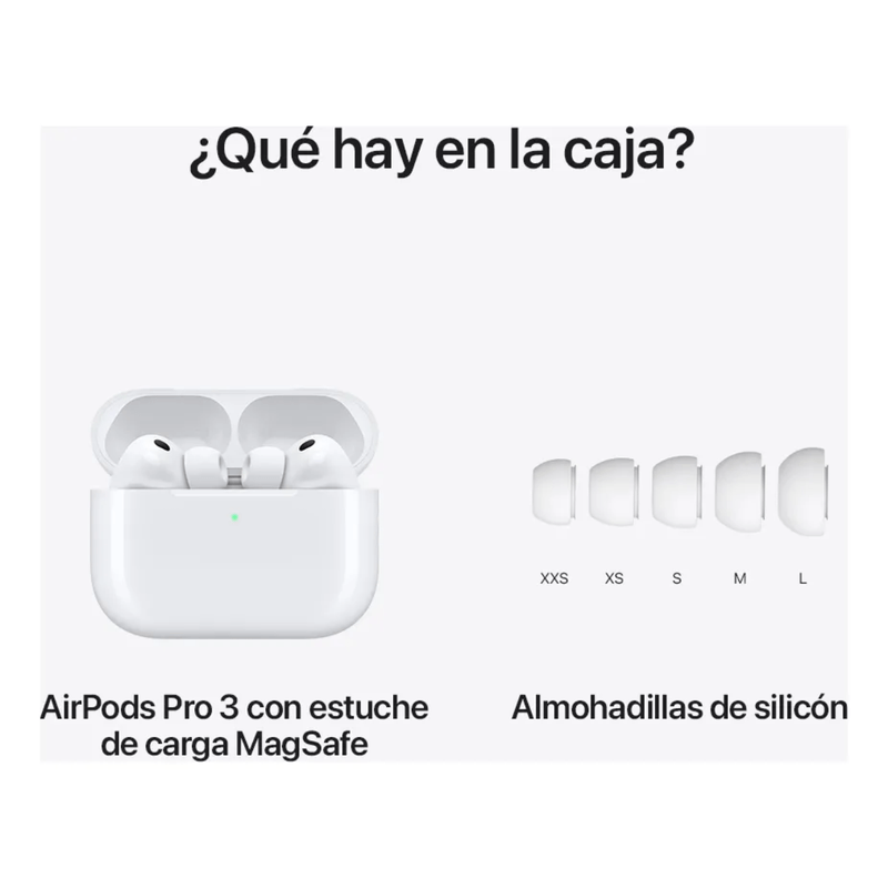 La nueva generación de auriculares inalámbricos de Apple que lleva tu música y llamadas al siguiente nivel. Con cancelación activa de ruido ultra avanzada para aislarte del mundo, sonido envolvente personalizado y hasta 8 h de autonomía, cada momento suena más claro y profundo. Equipados con tecnología inteligente —como audio adaptativo, reconocimiento de conversación y sensores de actividad— estos AirPods transforman tu día a día con comodidad, estilo y rendimiento premium.