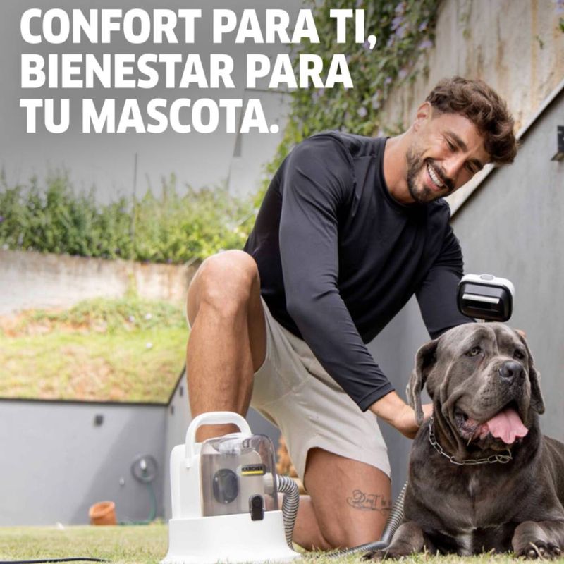 La aspiradora Pet Clean es un equipo compacto y silencioso diseñado para el cuidado de mascotas y la limpieza del hogar. Sus características principales son Funcionalidad 5 en 1 que aspira el hogar, elimina el pelo de textiles, corta el pelo, desenreda nudos y cepilla el pelo de las mascotas. Además, gracias a su filtro HEPA lavable absorbe el 99% del pelo suelto, ácaros y alérgenos con una alta potencia de succión con bajo nivel de ruido: Funciona a 66 dB(A) y tiene una potencia de 300 W. Cuenta con variedad de accesorios como: Cortapelos inalámbrico (con medidas de corte de 1 mm a 2.8 mm), cepillo de limpieza, cepillo para mascotas con peine de agujas extraíble, peine de cuchillas extraíble, boquilla para rincones, manguera, dos peines guía para el cortapelos (3 mm, 6 mm y 9 mm, 12 mm) y cable de carga. Por úlimo., tiene fácil vaciado por su depósito de 1.4 L que se vacía con un solo botón.