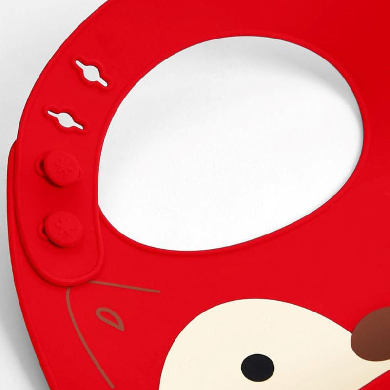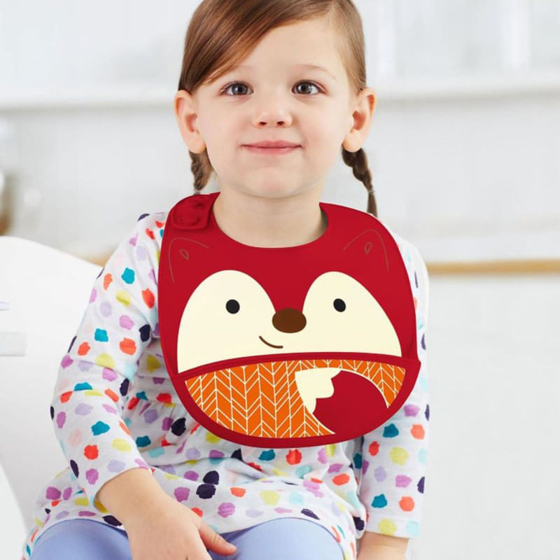 La mayoría de los baberos para bebés y niños pequeños se manchan rápidamente. Nuestro babero de silicona Zoo Fold & Go se limpia fácilmente para una limpieza rápida. ¡Incluso puedes meterlo en el lavavajillas! Con un bolsillo profundo para recoger migas, está hecho de silicona segura para alimentos y tiene una correa para el cuello ajustable para la comodidad del bebé. ¿Aun mejor? ¡El diseño listo para viajar se pliega fácilmente en el bolsillo para llevar! Libre de BPA y Phtalatos. Edad 6m+. Medidas: 26cms largo x 28cms alto.