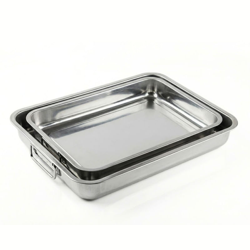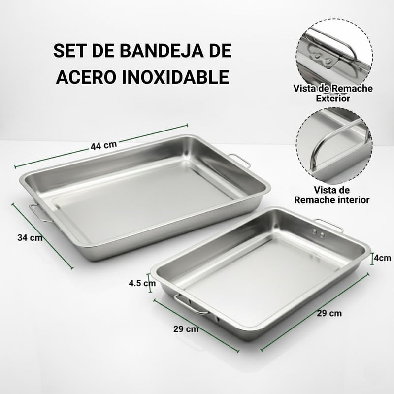 SET DE 2 BANDEJAS DE ACERO INOXIDABLE CON ASAS PLEGABLES – Más practicidad en un solo combo