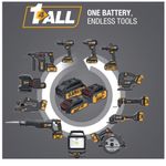 El Kit DXK904 CAT incluye una batería de iones de litio de 2.0 Ah y su cargador, proporcionando la energía y recarga necesarias para el funcionamiento eficiente de las herramientas CAT de la plataforma 18V Share™. Es una solución práctica y confiable para trabajos ligeros y de mantenimiento, combinando buen rendimiento con un peso reducido.