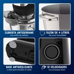 - Tazón de acero inoxidable con capacidad para 4 litros.
