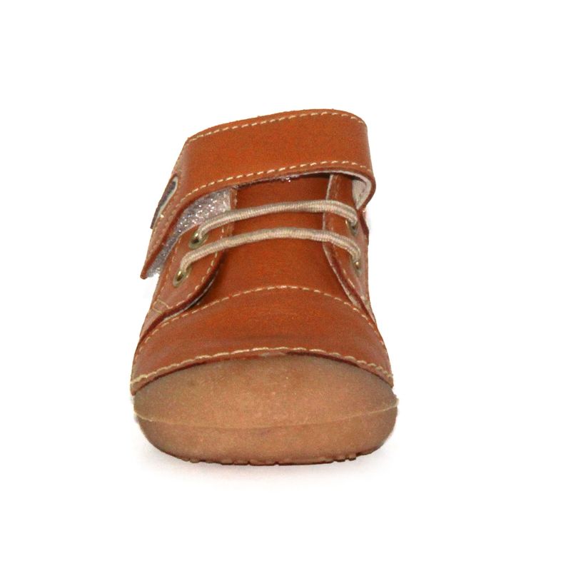 Zapato con aparado de cuero y velcro, permitiendo un ajuste perfecto. Tiene además plantilla de cuero que ayuda a la absorción de la humedad en el pie. A partir de la talla 21 hasta la talla 25 lleva una planta de mayor densidad. |Capellada: Cuero|Forro: Cuero-Textil|Plantilla: Cuero|Planta: Caucho