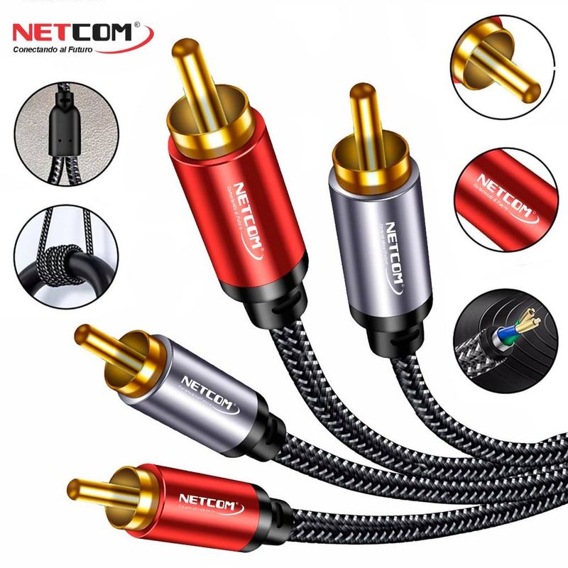 Cable de audio 2 RCA a 2 RCA Macho 1.8 Metros NETCOM