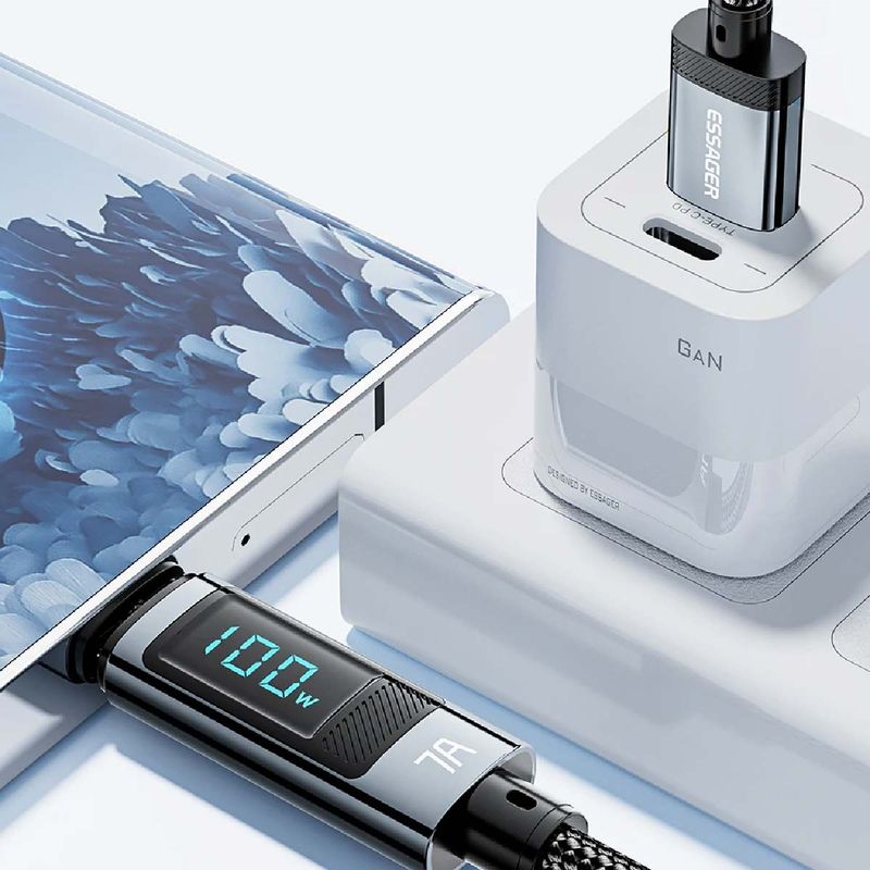 • Marca: Essager 100% Original - Essager 100% Original - Cable de Carga Rápida 7A 100W Tipo USB C- USB A con Pantalla digital