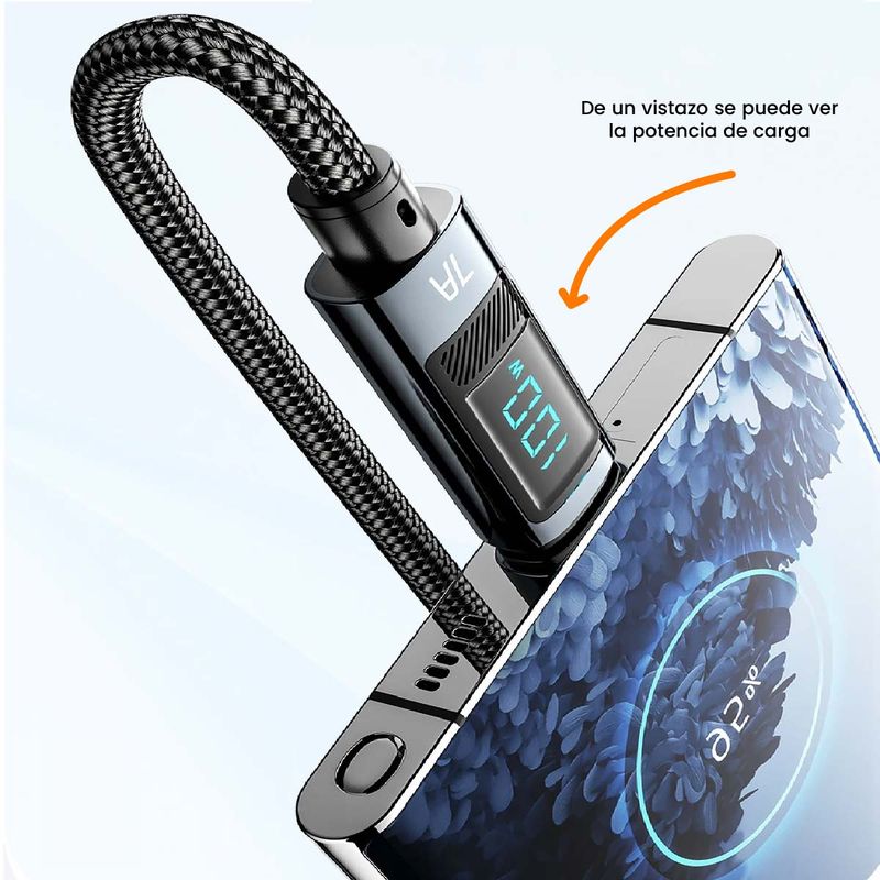 Cable de Carga Rápida 7A 100W Tipo USB C- USB A con Pantalla digital