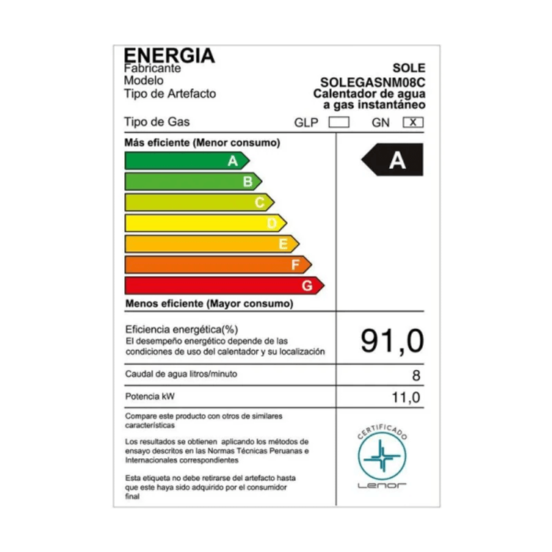 ElectrohogarClimatizacionTermas y RapiduchasCalentador Instantáneo Multipunto GN 8Lt C/Acc Sole SOLEGASNM08C