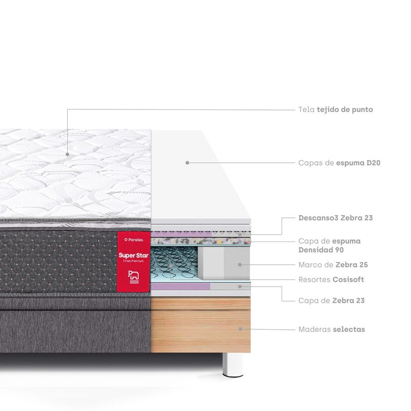 Cama Boxet PARAISO Super Star Queen Gris