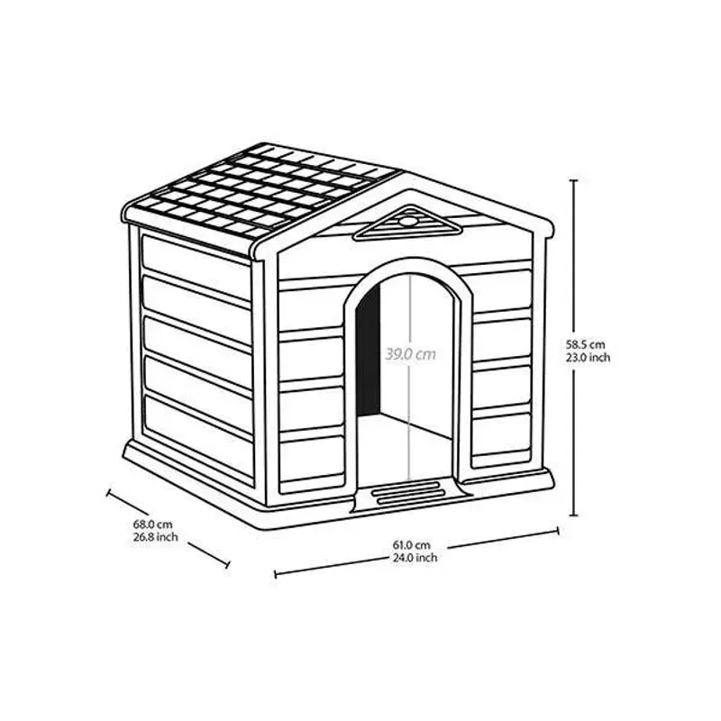Dimensiones: aproximadamente 68 cm (largo) × 61 cm (ancho) × 58.5 cm (alto) — tamaño adecuado para perros pequeños o cachorros.