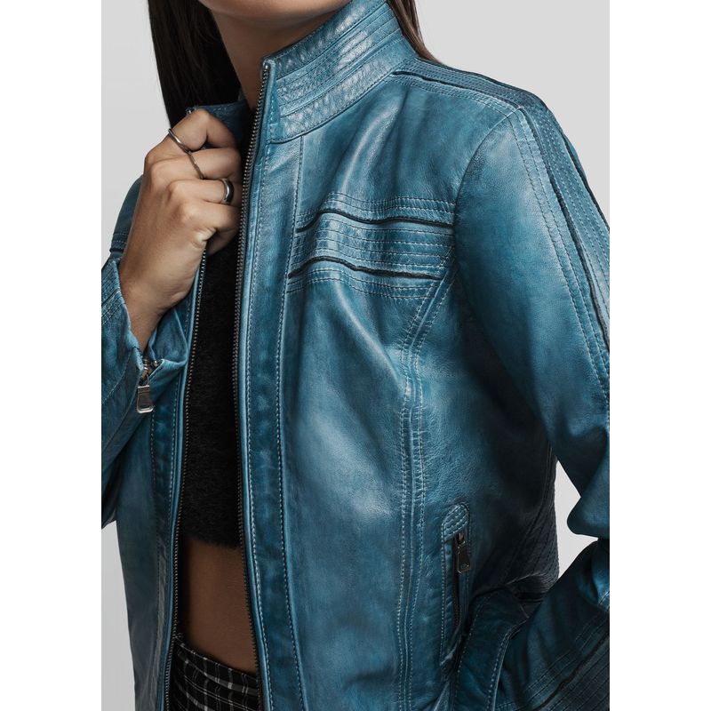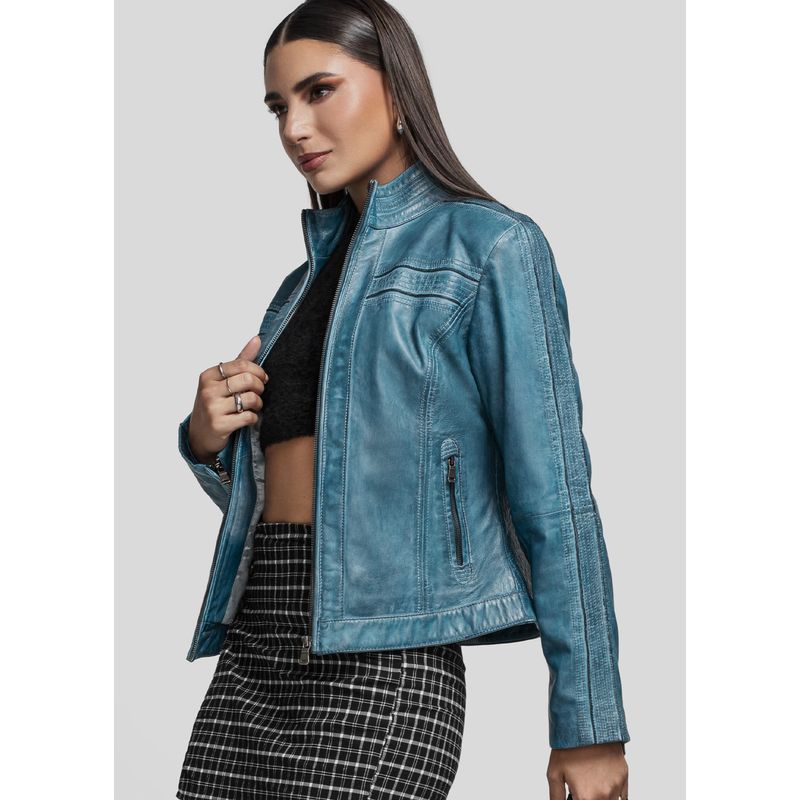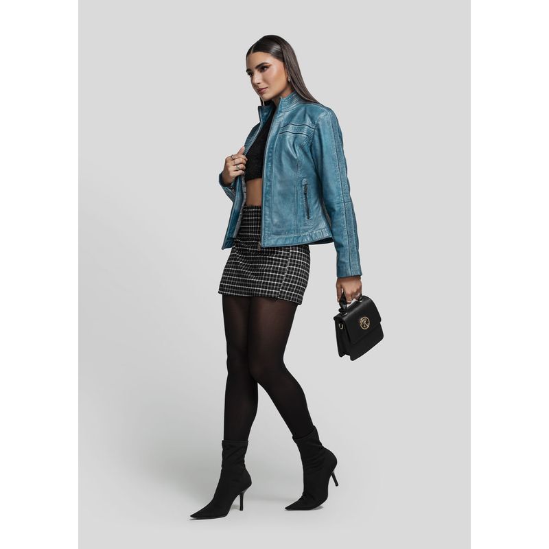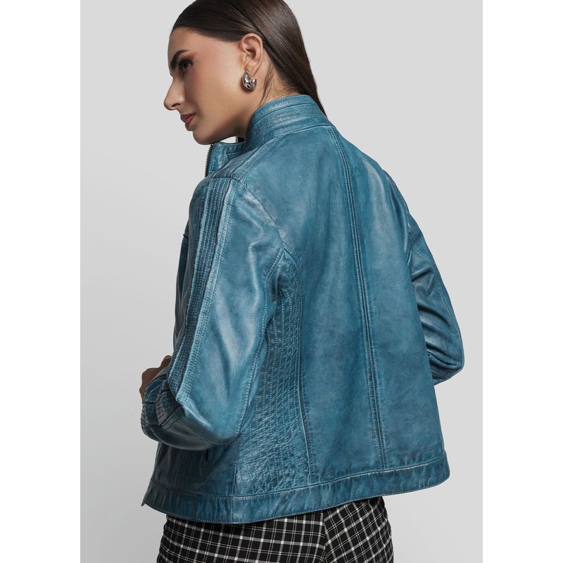 Casaca Vintage Soul de cuero muy suave con acabado desgastado que resalta en costuras y cortes, creando un efecto tipo lavado con carácter. Su diseño entallado realza la figura, mientras que los detalles en mangas, hombros y pecho le aportan una estructura marcada y femenina. Un estilo casual con actitud, que combina textura, historia y fuerza en cada costura.