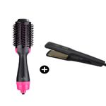 Cepillo Alisador Ondulador One Step 4 en 1 + Plancha Para Cabello Profesional Rozia Negra