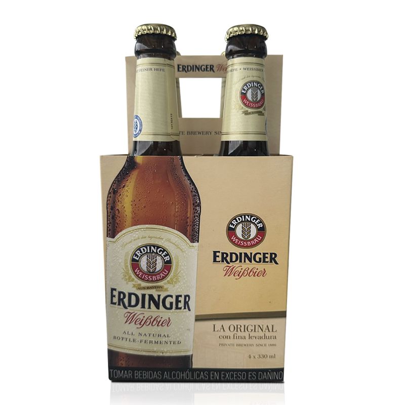 SupermercadoBebidas y LicoresCervezasCervezas ImportadasCerveza ERDINGER Weissbier Botella 330ml Paquete 4un