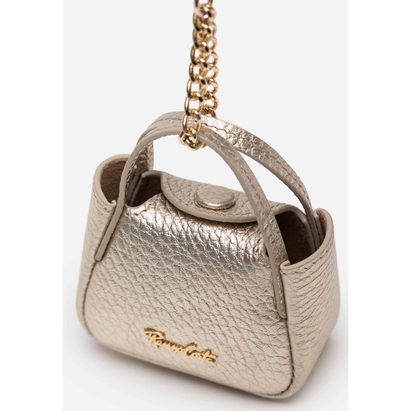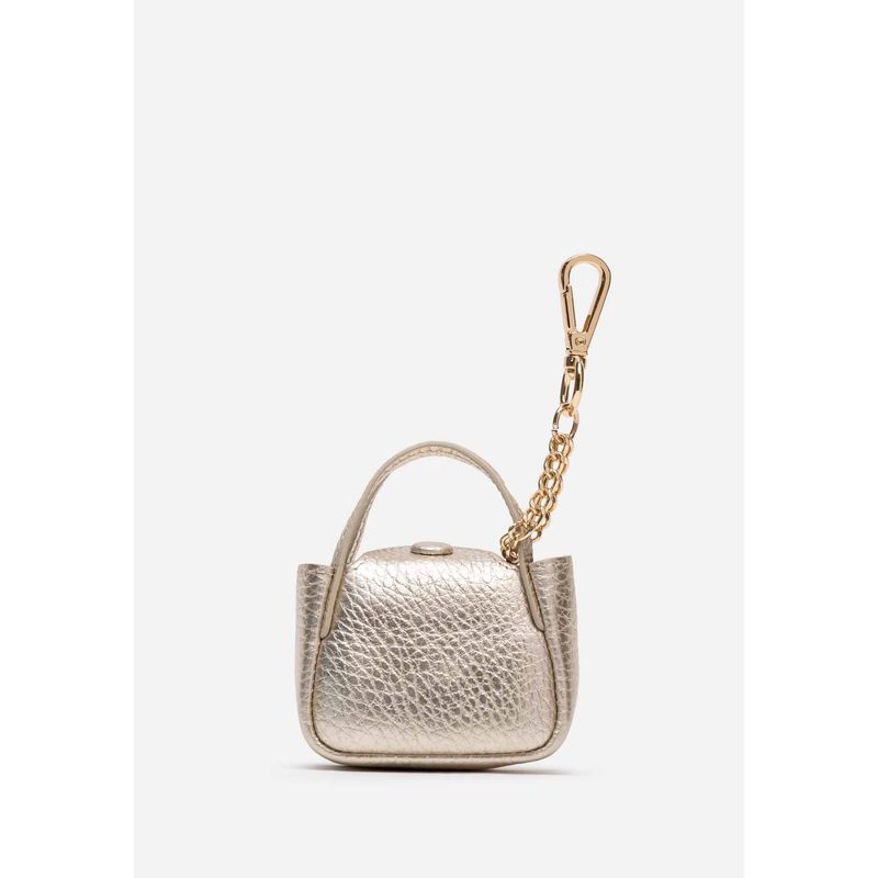 El acabado grabado del cuero y los accesorios metálicos en acabado dorado aportan un contraste equilibrado, mientras el broche frontal y el logotipo metálico de la marca completan su estética cuidada. Ideal para colgar en carteras, mochilas o llaves, este charm celebra la belleza de los pequeños gestos y la elegancia que se siente más de lo que se muestra.