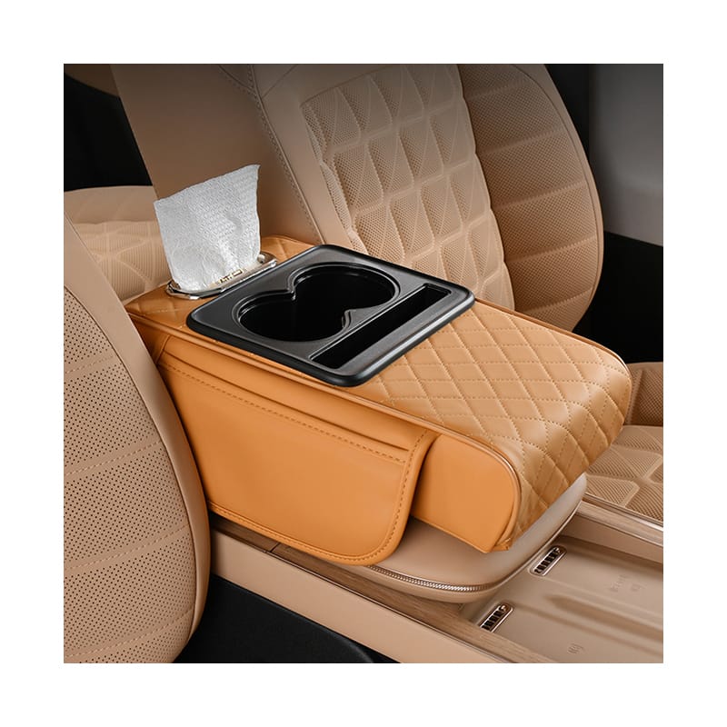 Incluye portavasos y una caja para pañuelos.