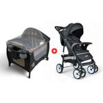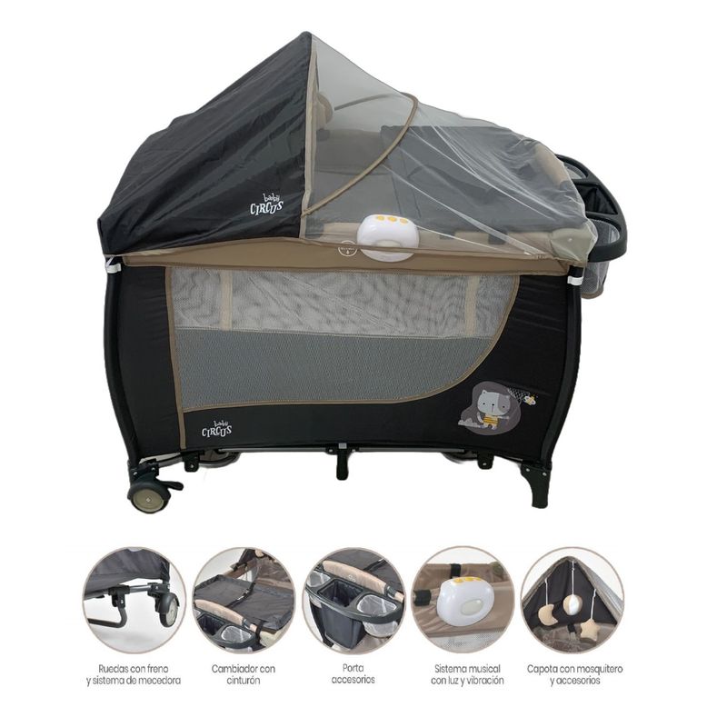 Combo Coche Multiposiciones Para Bebé Circus Negro + Cuna Corral Beige