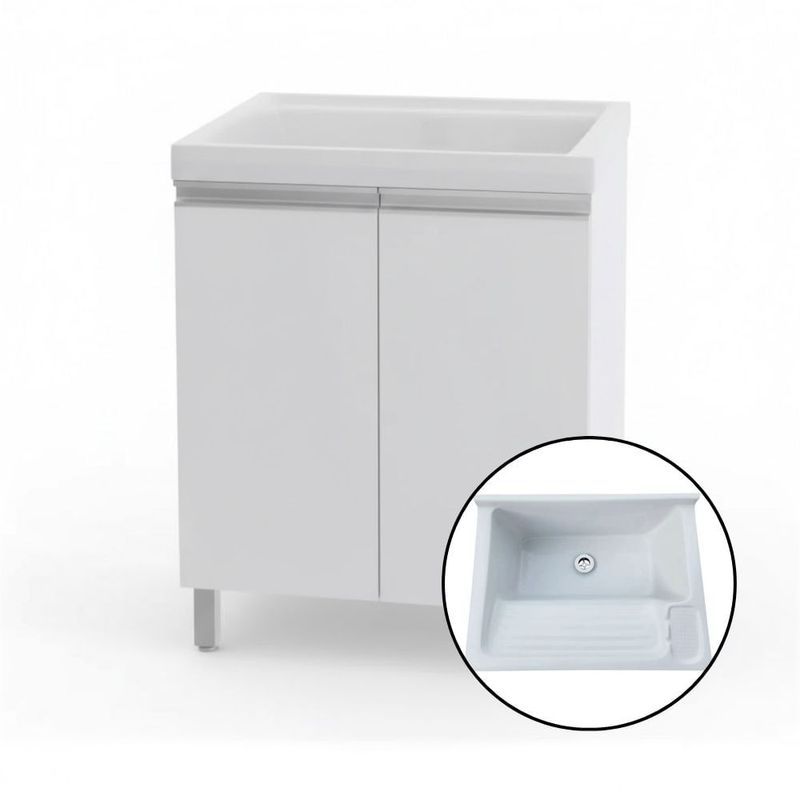Promart trae para ti este combo de muebles para lavandería, fabricado en melamina de gran calidad. Cuenta con un compartimiento en la parte superior para que puedas guardar artículos de limpieza como detergente, suavizantes de ropa, escobillas, entre otros. ¡Combínalo con el mueble bajo para lavandería!