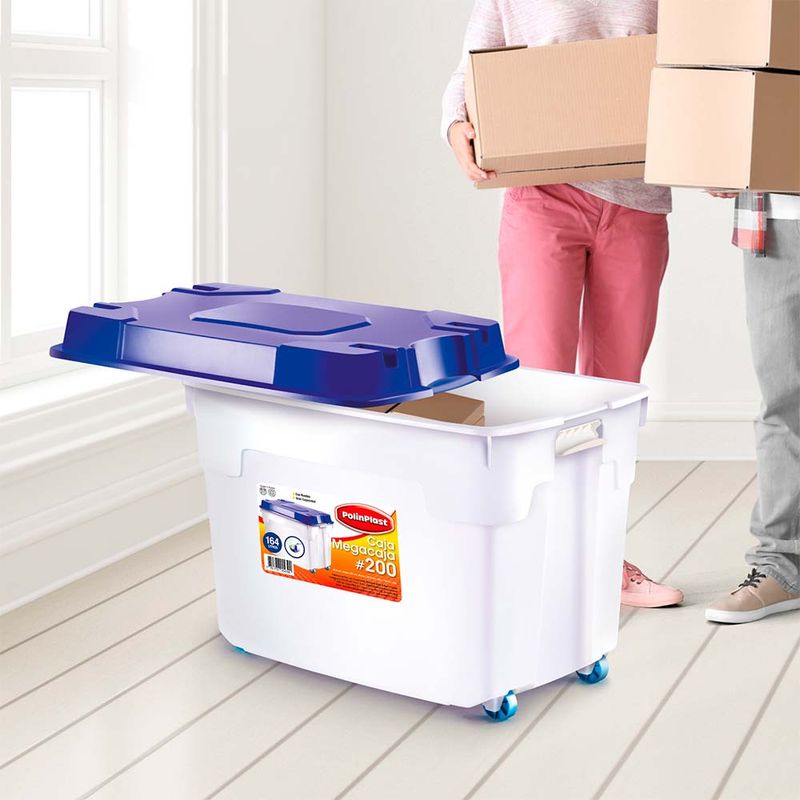 HogarOrganizacionCajas OrganizadorasCombo Polinplast: 4 Cajas Organizadora Mega #200 Azul 164 litros con Ruedas