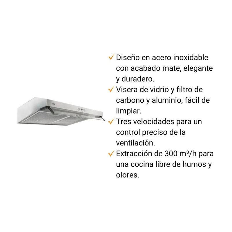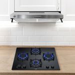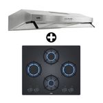 COMBO Sole: Cocina Encimera 60cm Rubí 4 Hornillas Vidrio Templado + Campana Extractora Convencional 60cm Nueva Roma 1 Motor Acero Inoxidable