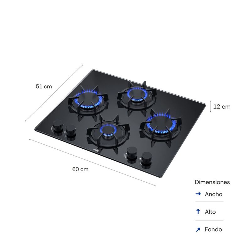 Cocina Encimera 60cm Sole Rubí 4 Hornillas Vidrio Templado. Disfruta de lo más nuevo que Promart.pe trae para ti.