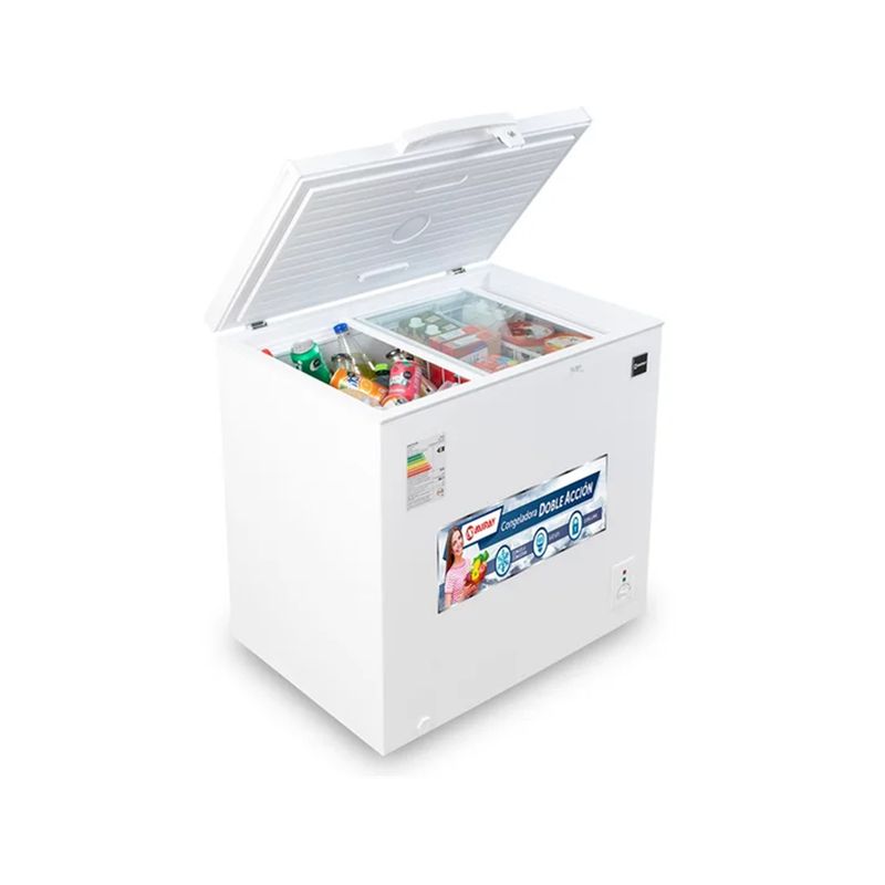 Cuenta con un termostato análogo que permite regular la temperatura hasta -18 °C, asegurando un congelamiento eficiente. Su sistema de enfriamiento en las 4 paredes garantiza una distribución uniforme del frío, manteniendo los alimentos correctamente conservados en todo el interior.