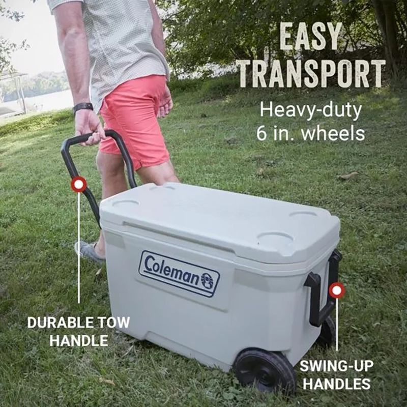 La hielera Coleman con una capacidad de 62 cuartos (hasta 101 latas) tiene todas las características que necesitará para actividades al aire libre, desde paseos con amigos hasta viajes de campamento. La tapa y el cuerpo completamente aislados para que pueda disfrutar de bebidas frías en el campamento después de caminar por los senderos o cocinar comidas abundantes. Aislamiento en la tapa y el cuerpo permitirán mantener los alimentos y las bebidas más fríos durante más tiempo. Forro antimicrobiano y resistente a las manchas resiste la formación de olores, moho y hongos entre usos.