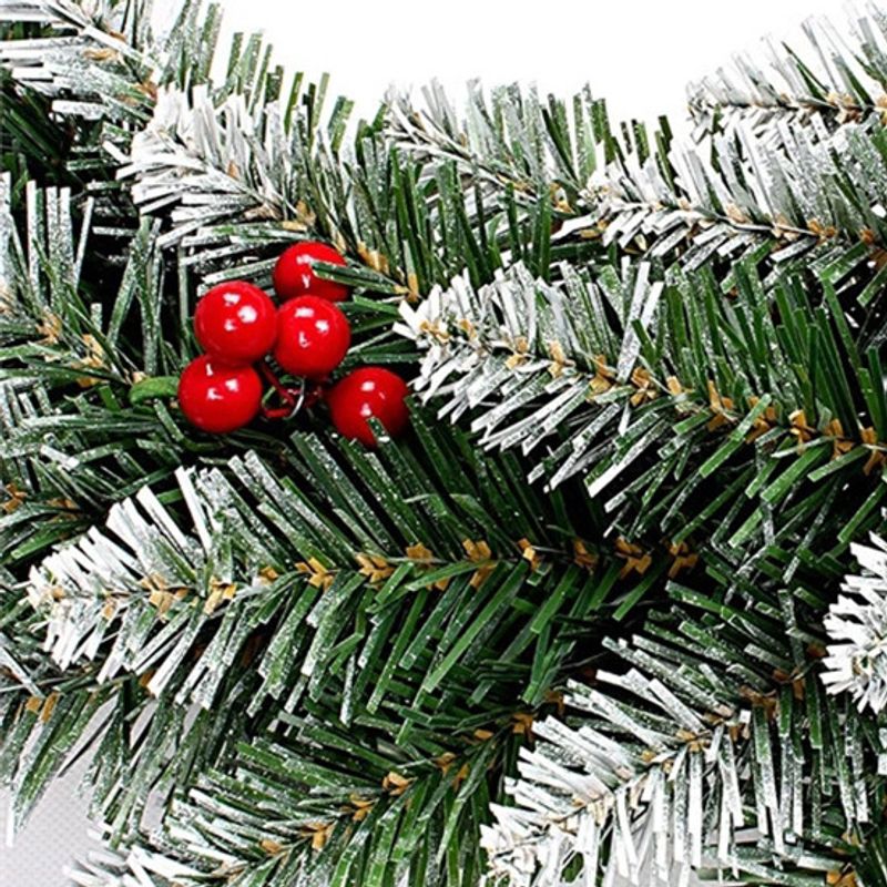 las coronas de Navidad de diseño único combinan con una cuerda de bayas rojas, el núcleo de piña y los copos de nieve hacen que la corona sea más brillante, hermosa y elegante.
