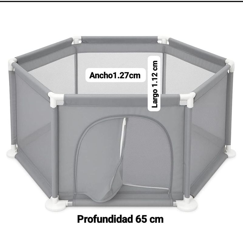 Corral de juegos hexagonal para bebés y niños, diseñado para brindar un espacio seguro, cómodo y amplio donde los pequeños puedan jugar, gatear y explorar con libertad mientras permanecen protegidos. Fabricado con materiales resistentes y seguros, cuenta con estructura estable y malla transpirable que permite una fácil visibilidad desde el exterior, ayudando a los padres a supervisar en todo momento. Su diseño práctico facilita el armado y desmontaje, siendo ideal para uso en interiores o exteriores. Proporciona un área de juego segura que estimula el desarrollo motriz y la independencia del niño, convirtiéndose en una solución funcional y confiable para el cuidado diario.