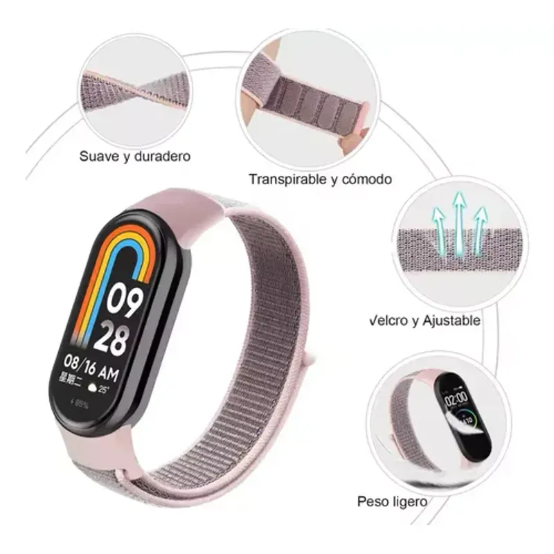 TecnologiaTelefoniaSmartwatchAccesorios de smartwatchCorrea de nylon Xiaomi Band 8-9 Rosado