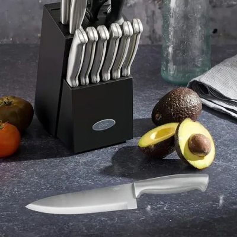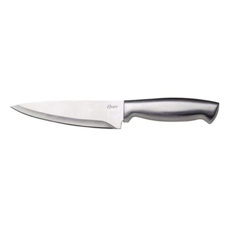 Cuchillo de chef Baldwyn Oster de acero inoxidable de 19,3 cm Un artículo esencial para cualquier cocina, el cuchillo de chef ayuda a cortar con precisión varios tipos de alimentos. Ya sea para cortar un trozo de carne o para picar verduras, el cuchillo Chef Baldwyn Oster es el más recomendado para satisfacer estas necesidades. Tiene un cuerpo de acero inoxidable y el mango es de aluminio cepillado, lo que añade un toque extra de belleza al producto.