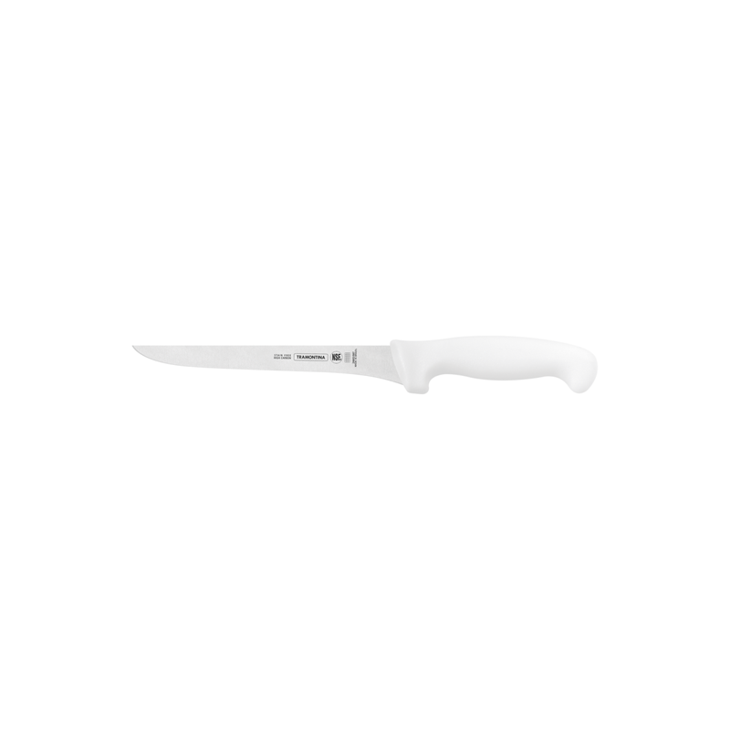 Calidad y durabilidad para profesionales que trabajan mucho. Con tecnología de punta, los cuchillos profesionales de Tramontina están siempre preparados para entrar en acción y lucirse con cualquier ingrediente, corte o receta. Eficiencia es lo que no falta. La altísima calidad de las láminas, resultado del tratamiento térmico compuesto por templado (calentamiento de la lámina), subcero (enfriamiento de 50 a 196 grados negativos) y revenido (aumento de la elasticidad del acero) les da vida larga y eficiente. La anatomía y ergonomía del mango de polipropileno con textura, inyectado directamente sobre el alma de acero, ofrecen seguridad y comodidad durante el manejo. La protección antimicrobiana inhibe y reduce el crecimiento de bacterias y hongos. Esta tecnología se incorpora durante el proceso de fabricación del mango y dura toda la vida útil del producto, pero no elimina la necessiad de lavarlo.