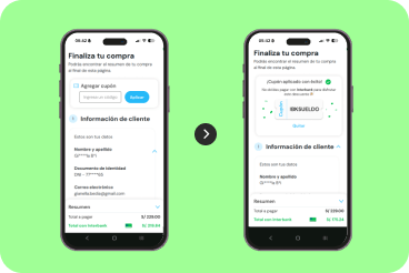 Verás el descuento reflejado en el resumen de tu compra.