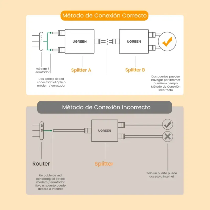El Divisor Ethernet UGREEN CM210 RJ45 1 a 2 permite compartir una conexión de red cableada de forma sencilla, ofreciendo estabilidad y practicidad para oficinas, hogares y espacios de trabajo donde se requiere conectar dos dispositivos desde un solo puerto Ethernet.