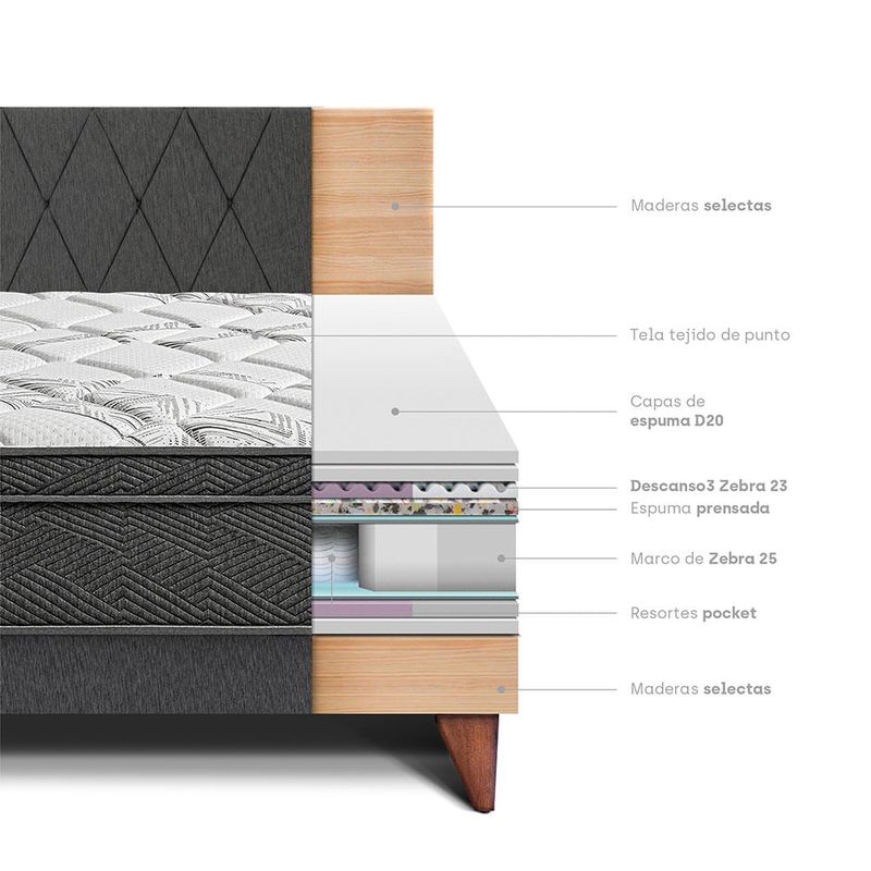 Dormitorio Pocket Star C/loft Queen Charcoal Paraiso