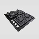 • Quemadores: 4 (1 pequeño, 2 medianos y 1 triple flama) • Quemador Europeo SABAF (Italia): Si, triple flama • Parrillas: Hierro fundido • Mesa de cocción: Vidrio Templado • Tipo de encendido: eléctrico automático
