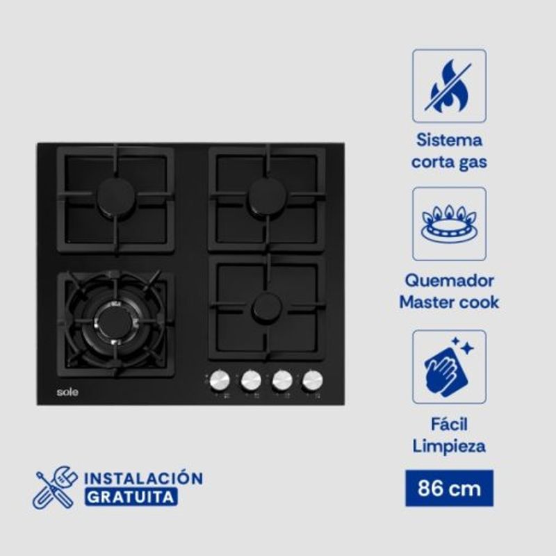 Encimera Vidrio Templado Sole A Gas 59cm SOLCO040 - OFERTA!