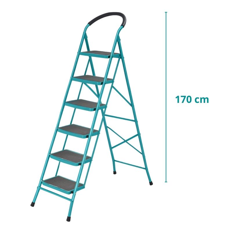 Escalera tubular de acero con 6 peldaños, resistente y estable, soporta hasta 150 kg, ideal para trabajos en el hogar, oficina o taller