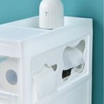 - Cuenta con orificios para papel higiénico y toallitas húmedas.