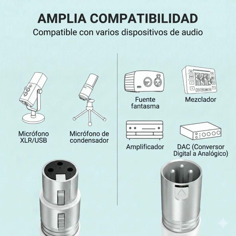 Conexión segura: diseñado con conectores resistentes y blindaje confiable, el cable XLR garantiza una conexión segura y sin interferencias, minimizando la pérdida de señal y el ruido no deseado
