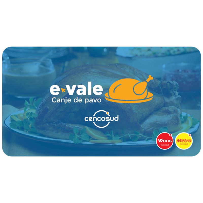 Incluye una tarifa de servicio destinada a cubrir gastos administrativos de la marca, materiales, capacitaciones y mejoras tecnológicas, garantizando la mejor experiencia con tu gift card. Este vale de pavo de 8 kilos es válido para canjear en tiendas Wong y Metro, ofreciéndote una opción práctica y conveniente para tus compras de temporada.Válido en tiendas físicas Metro y Wong a nivel nacional, no válido para canal online, fonocompras ni concesionarios. E-vale al portador, la empresa no se responsabiliza de pérdida, robo o mal uso, por lo que no se emiten duplicados.La vigencia de Gift Card está detallada en el documento que enviaremos a su buzón de correo. Para evitar inconvenientes, les recomendamos revisarlo y hacer uso de su saldo dentro del período indicado, no se permiten ampliaciones. El cliente debe consumir el valor total del vale. La vigencia de este vale no podrá ser canjeado por dinero en efectivo. El usuario deberá presentar en caja el E-vale desde su celular o impreso, junto con su DNI y firmar el voucher de la compra. Consulta locales disponibles en https://www.giftealo.com/GiftealoWeb/locales