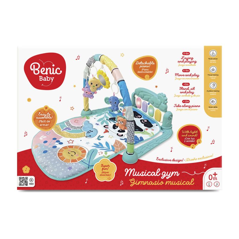 ¡El gimnasio interactivo perfecto para el desarrollo de tu bebé! Con luz y sonido, este gimnasio fácil de armar ofrece varios modos de juego: acostado, en movimiento, sentado y de pie. Incluye un piano desmontable, espejo y 5 sonajeros con partes de silicona. Con su arco colorido y alfombra suave, fomenta la coordinación y el ejercicio de las piernas. Un juego divertido y educativo que hará feliz a tu bebé en cada aventura.